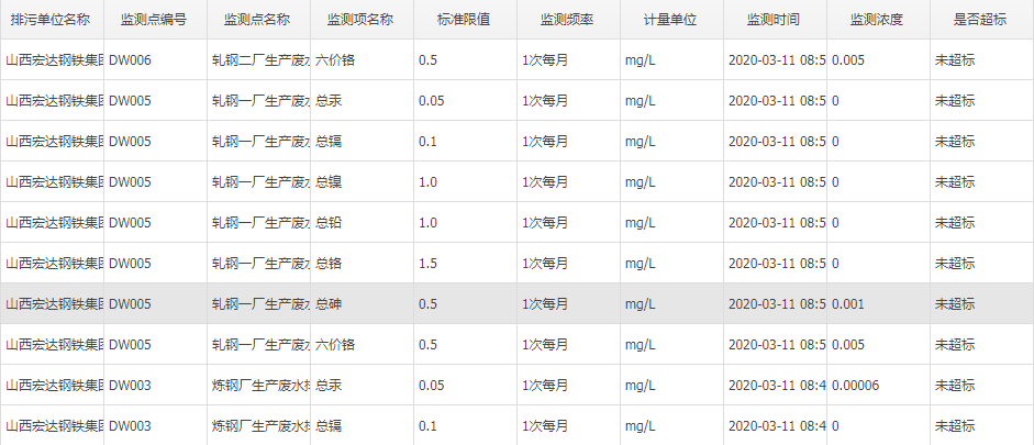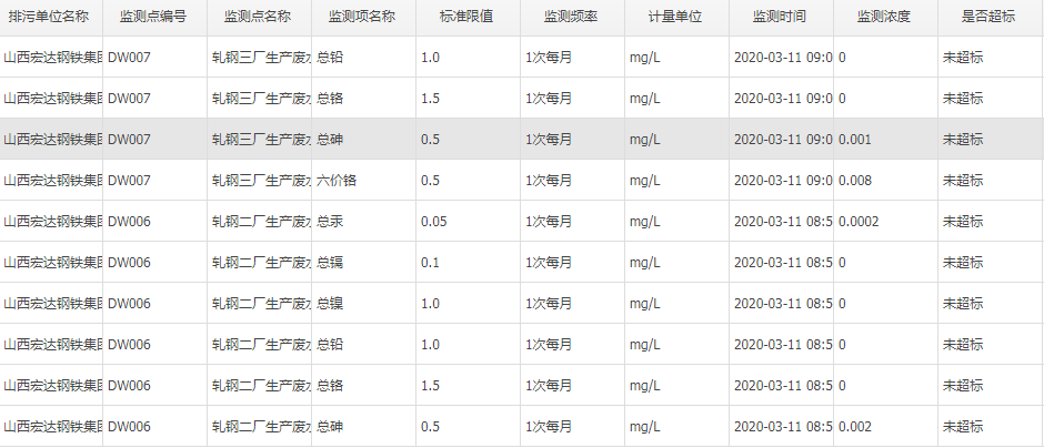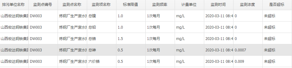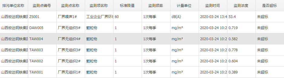 2020年三月份自行監測數據