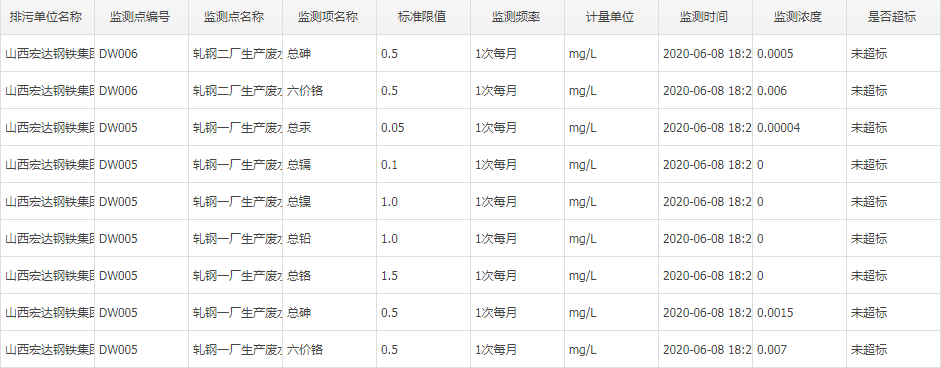 2020年六月份自行監(jiān)測數(shù)據(jù)